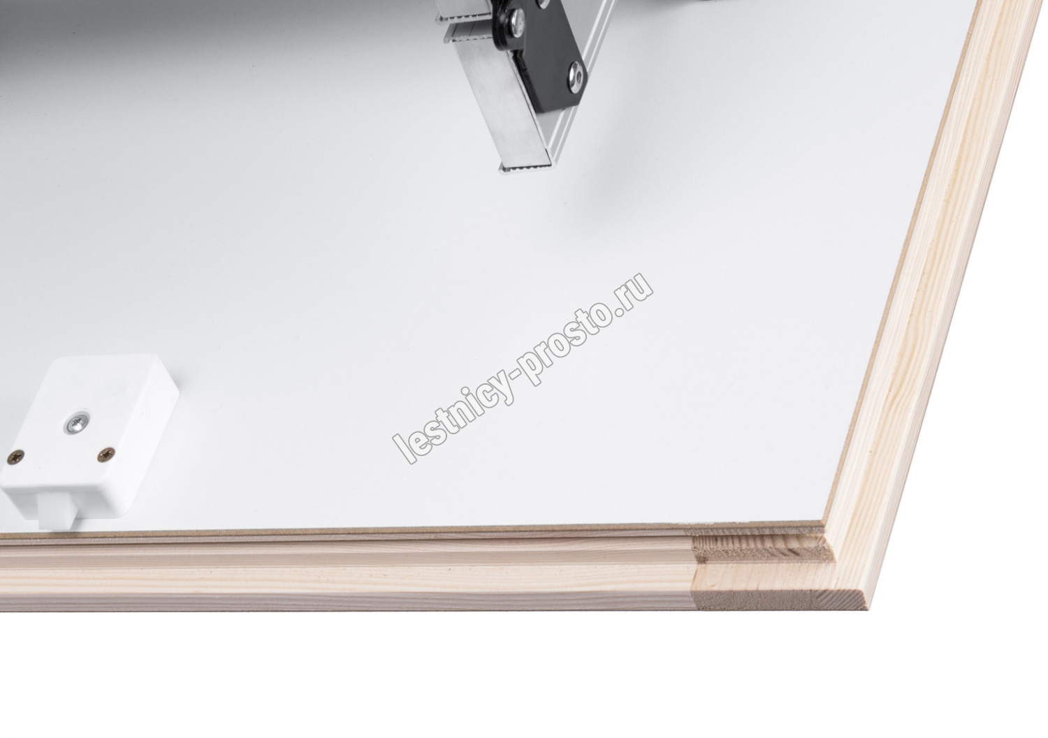 Складная 3-х секционная (до 2800 мм) или 4-х секционная (до 3500 мм) чердачная лестница. Рабочая поверхность полностью выполнена из алюминия. Термоизоляционная крышка типа "сэндвич" имеет усиленную теплозащиту, облицована с двух сторон ДВП белого цвета. По контуру короба имеется уплотнитель;