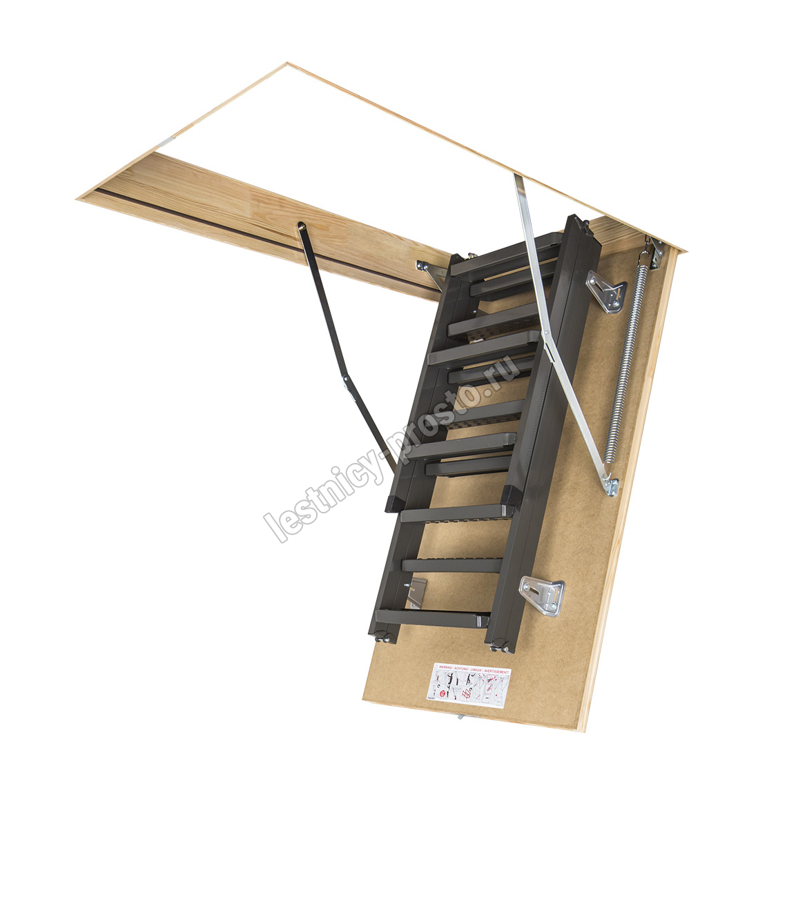 Чердачная металлическая лестница LMS – это надежная складная конструкция, состоящая из марша и термоизоляционной крышки, изготовленной из ДВП и окрашенной в бежевый цвет. Герметичность всей конструкции достигается благодаря утеплению крышки люка и контурному уплотнению по периметру, что предотвращает возможные теплопотери. Чердачную лестницу очень легко разложить и сложить благодаря наличию специального стержня с четырехугольной насадкой. Установленные в лестнице угловые петли-шарниры нового образца придают ей высокую прочность и надежность, а также предохраняют короб от возможной деформации. Основное преимущество чердачной складной металлической лестницы LMS сводится к ее небольшим габаритам при сохранении высокой функциональности, прочности, надежности и эстетичности конструкции. Монтировать лестницу очень просто, для этого не придется затрачивать много времени и сил. Применение лестничной конструкции этого типа позволяет существенно экономить пространство. Монтажный комплект LXK в комплекте не поставляется.