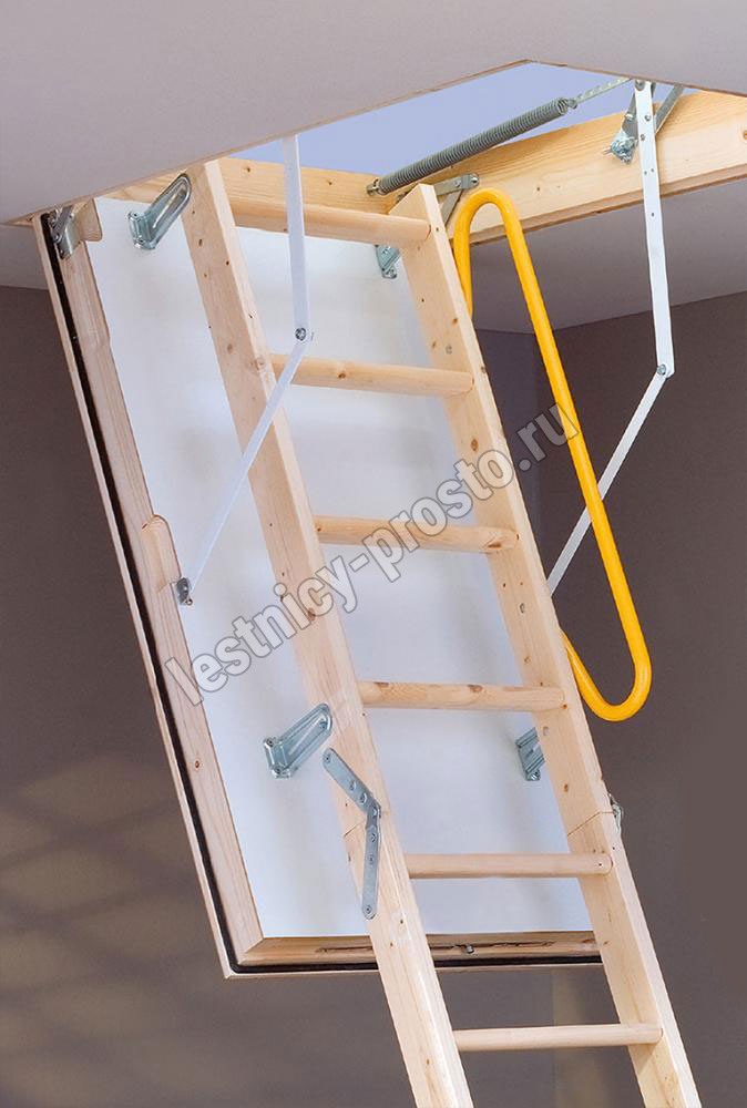 Складная деревянная лестница  из 3-х секций с утепленным изолированным люком идеально подходит для крайне холодных чердачных помещений.
