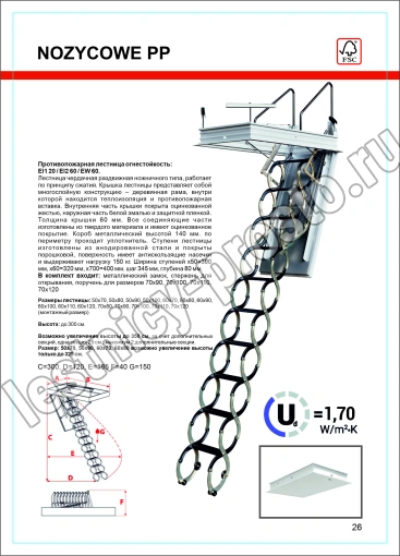 Противопожарная чердачная лестница с люком LSF OMAN NOZYCOWE PP 60х120 см, h-300 см