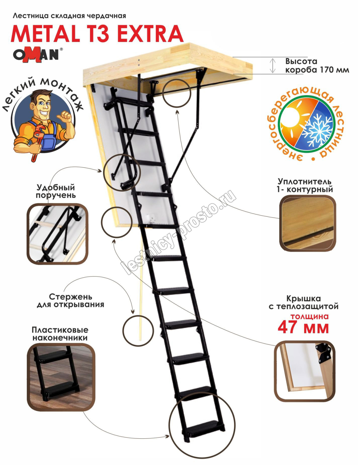 Чердачная складная лестница OMAN Metal T3 EXTRA