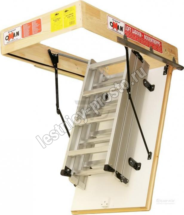 Чердачная лестница алюминиевая с люком OMAN ALU PROFI LITE LONG 60х120 см, h-350 см