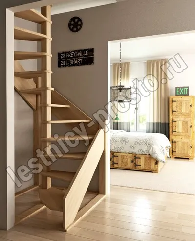 Деревянная межэтажная лестница ЛЕС-1,2ВУ, Бук