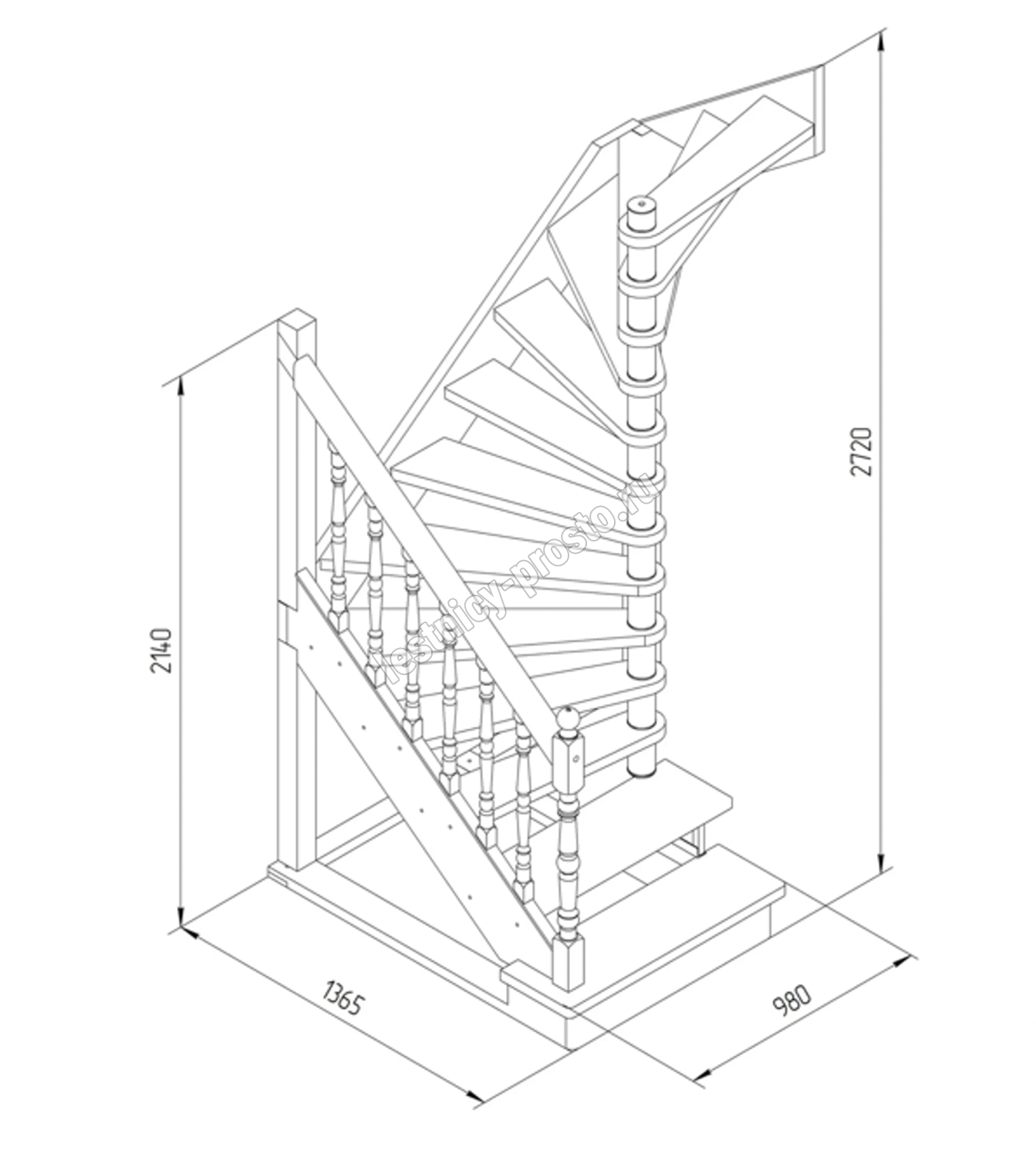 Лестница выполнена из древесины хвойных пород 8 % влажности.