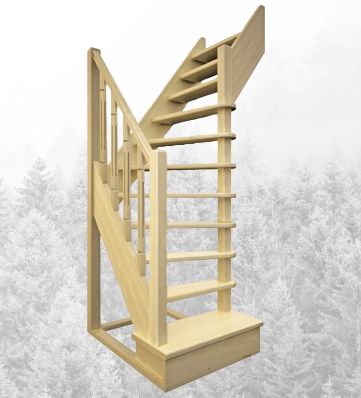 Лестница выполнена из древесины хвойных пород 8 % влажности.