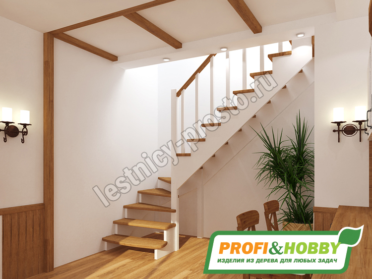 | Лестница из сосны К-001М/2 под покраску с подступёнками |