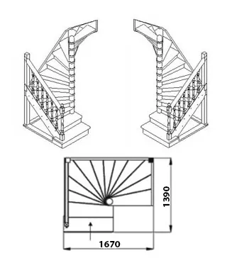 Базовый комплект включает в себя деревянные элементы лестницы без какого-либо покрытия. Лестница поставляется в разобранном виде.