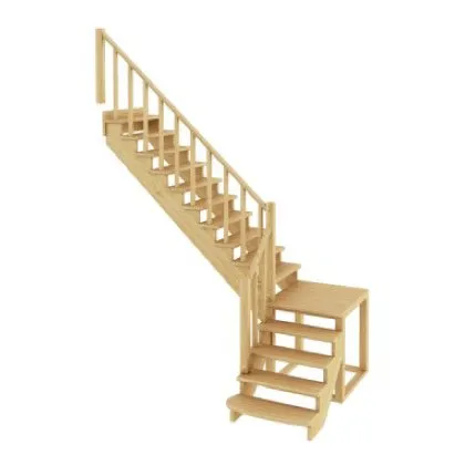 Базовый комплект включает в себя деревянные элементы лестницы и ограждения ;без какого-либо покрытия.