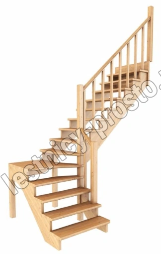 Ступени и поручень лестинцы изготовлены из бука, остальные элементы из сосны. Возможно изготовление данной модели полностью из бука. Базовый комплект включает в себя деревянные элементы лестницы и ограждения без какого-либо покрытия.