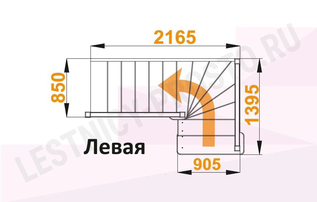 Схема лестницы ЛС-225М с поворотом налево