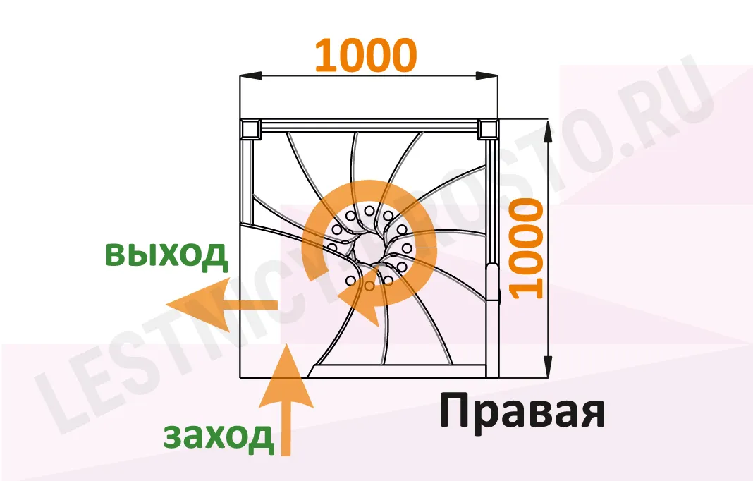 Схема лестницы ЛВ-1.0М с поворотом направо