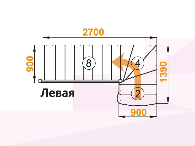 Удобная и современная модель с забежными ступенями будет отличным решением для помещений, где необходимо сэкономить свободное пространство. Сдержанный классический дизайн великолепно впишется в интерьер любого стиля и создаст уютную домашнюю атмосферу. Лестница имеет поворот на 90 градусов и выпускается в 4 различных вариантах, что существенно упрощает ее подбор.