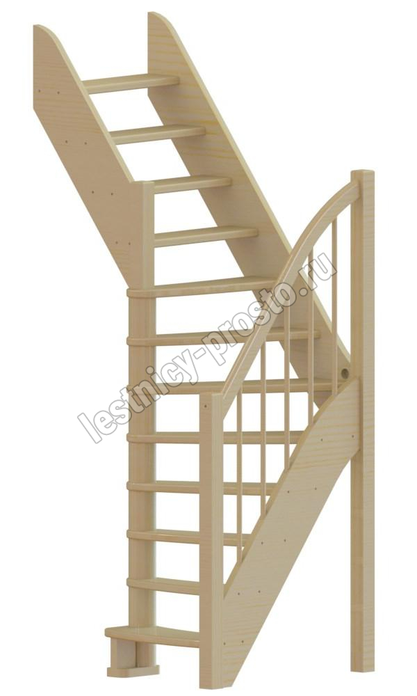 Базовый комплект включает в себя деревянные элементы лестницы и ограждения без какого-либо покрытия.