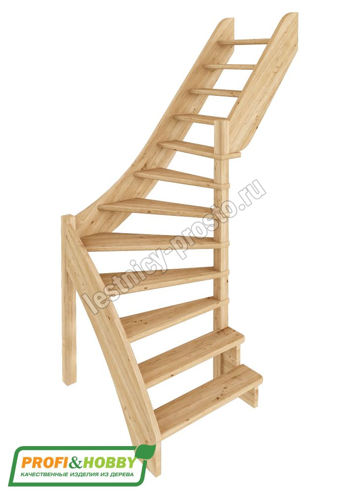 Базовый комплект включает в себя деревянные элементы лестницы без какого-либо покрытия.