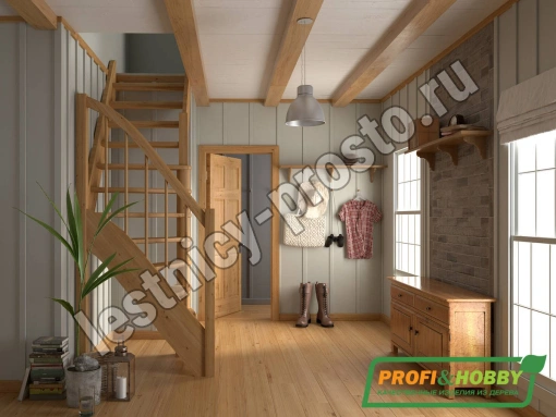 Лестница из сосны под покраску ЛС-91М+1 ступень сверху