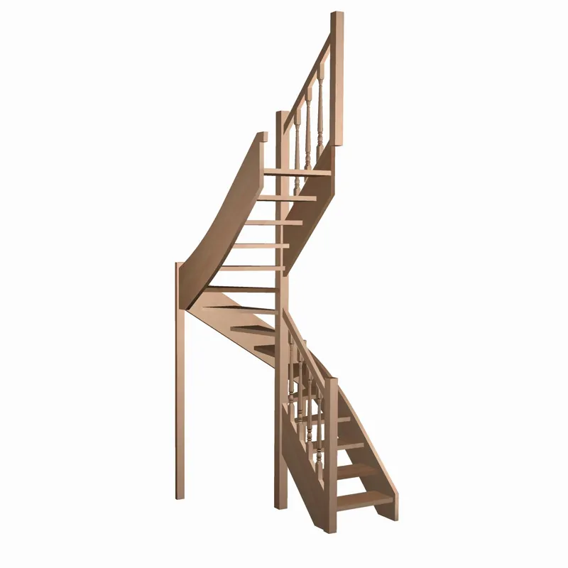 Ступени и поручень лестницы изготовлены из ясеня, остальные элементы из сосны.