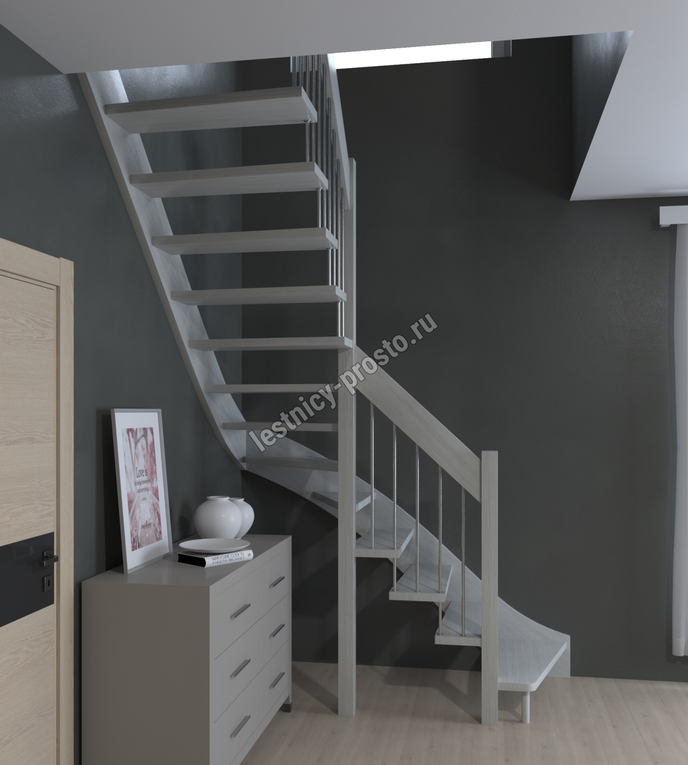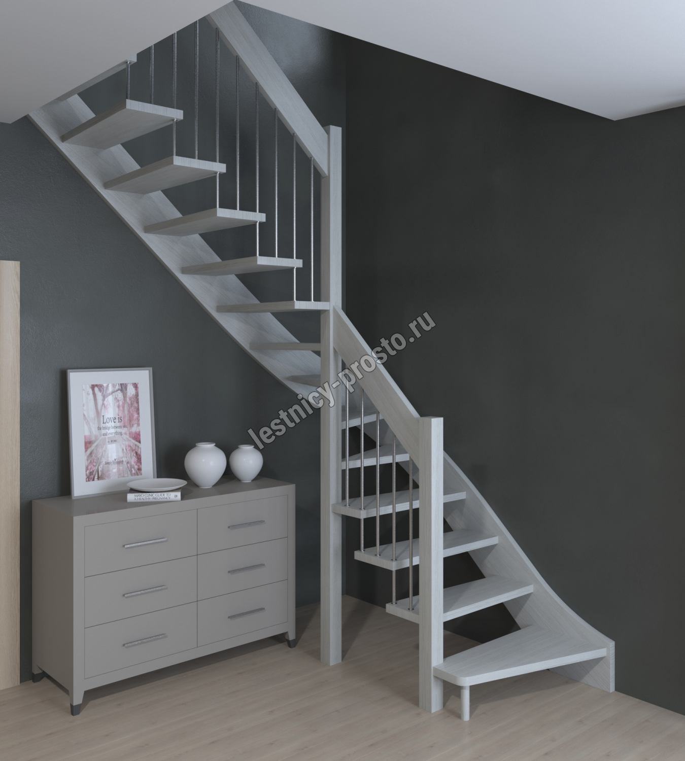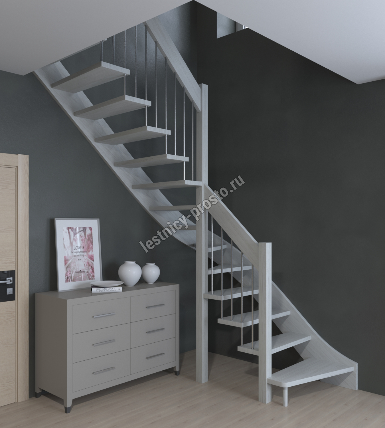 Лестница Prosto Console г-образная забежная бук, h247.5 см (10 ступеней)