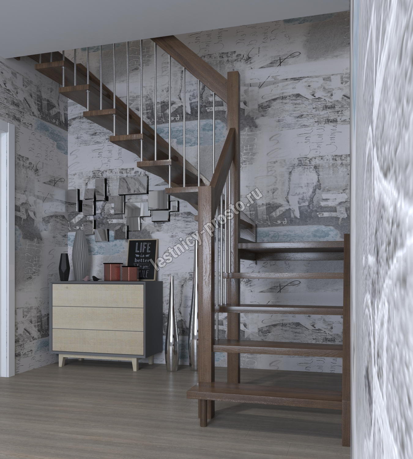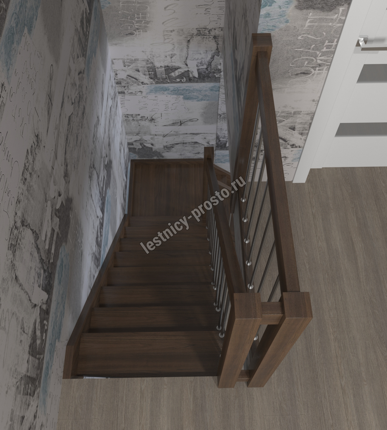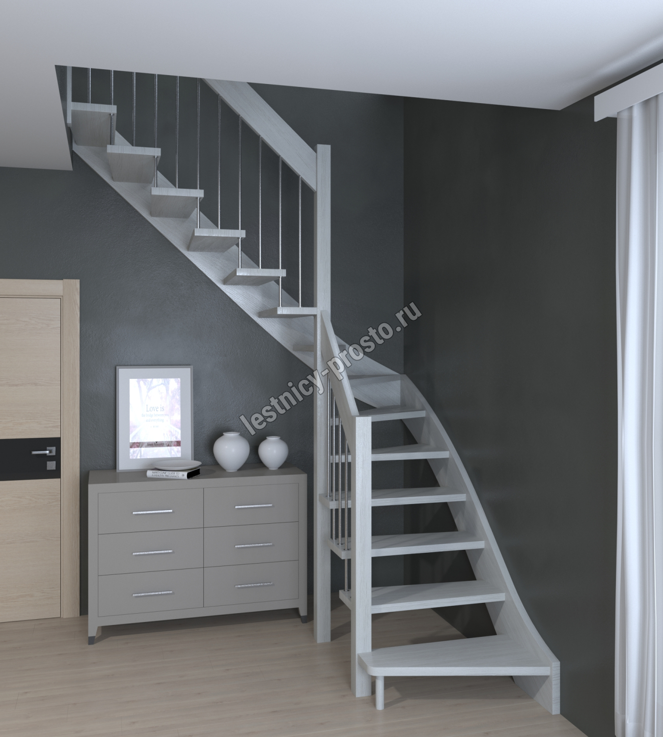 Лестница Prosto Console г-образная забежная бук, h247.5 см (10 ступеней)
