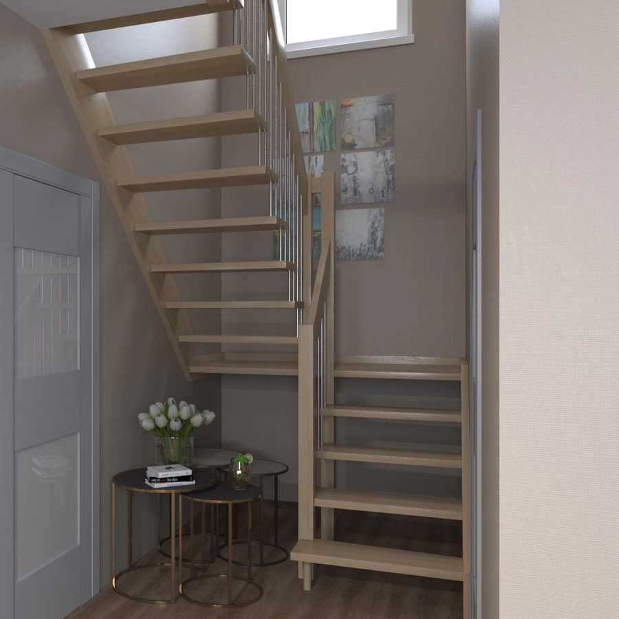 Лестница Prosto Console п-образная забежная, дуб h292.5 см (12 ступеней)