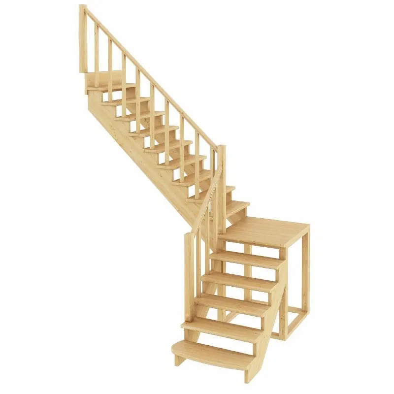 Лестница изготавливается под заказ. Возможны варианты подходящие под необходимые размеры проёма. Базовое ограждение можно заменить на кованое или точеное. Лестницу можно дополнить подступенями, бортиками, миниподступенями. Первую ступень можно заменить на пригласительную - лекальную. Классическая модель поворотной лестницы раскрывает всю природную красоту натуральных материалов. У лестницы комфортная высота шага, удобный широкий марш и угол подъема. Указана стоимость лестницы без какого-либо покрытия.