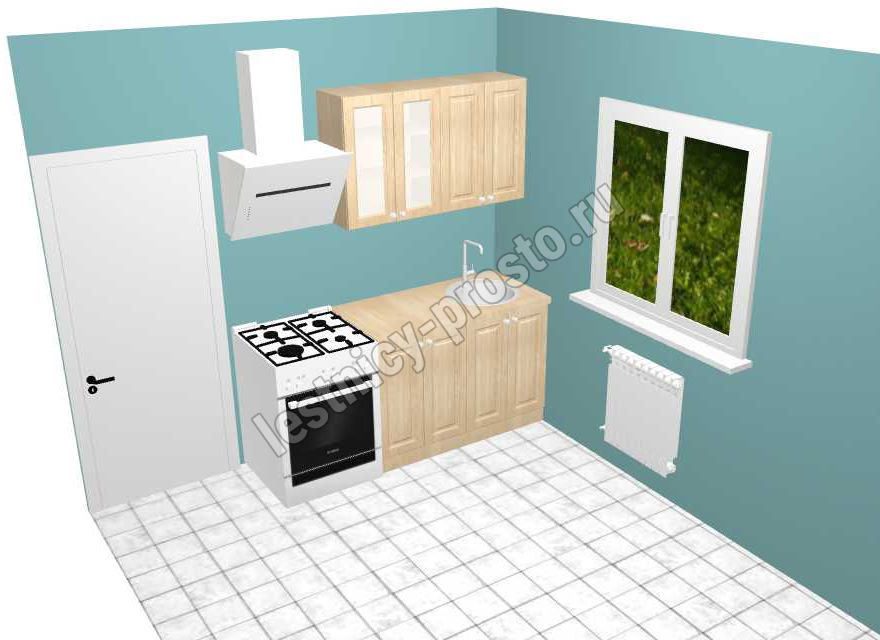 Кухня 1.2 х 2.14 м, массив сосны, бесцветный акриловый лак (Вар 2)