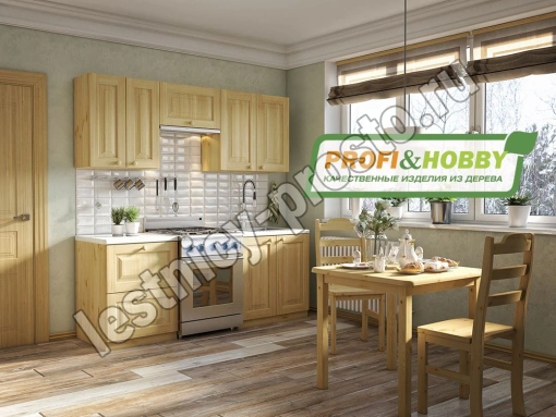 Небольшой кухонный гарнитур из 100% массива сосны шириной всего 2 и высотой 2,14 метра (верхние шкафы 72 см). Один из самых распространенных проектов кухни, который подойдёт для небольшой квартиры, загородного дома, гостиницы или хостела. Цвет на выбор - 27 вариантов (при заказе кухни в нашем интернет магазине просьба указывать название цвета в комментариях).