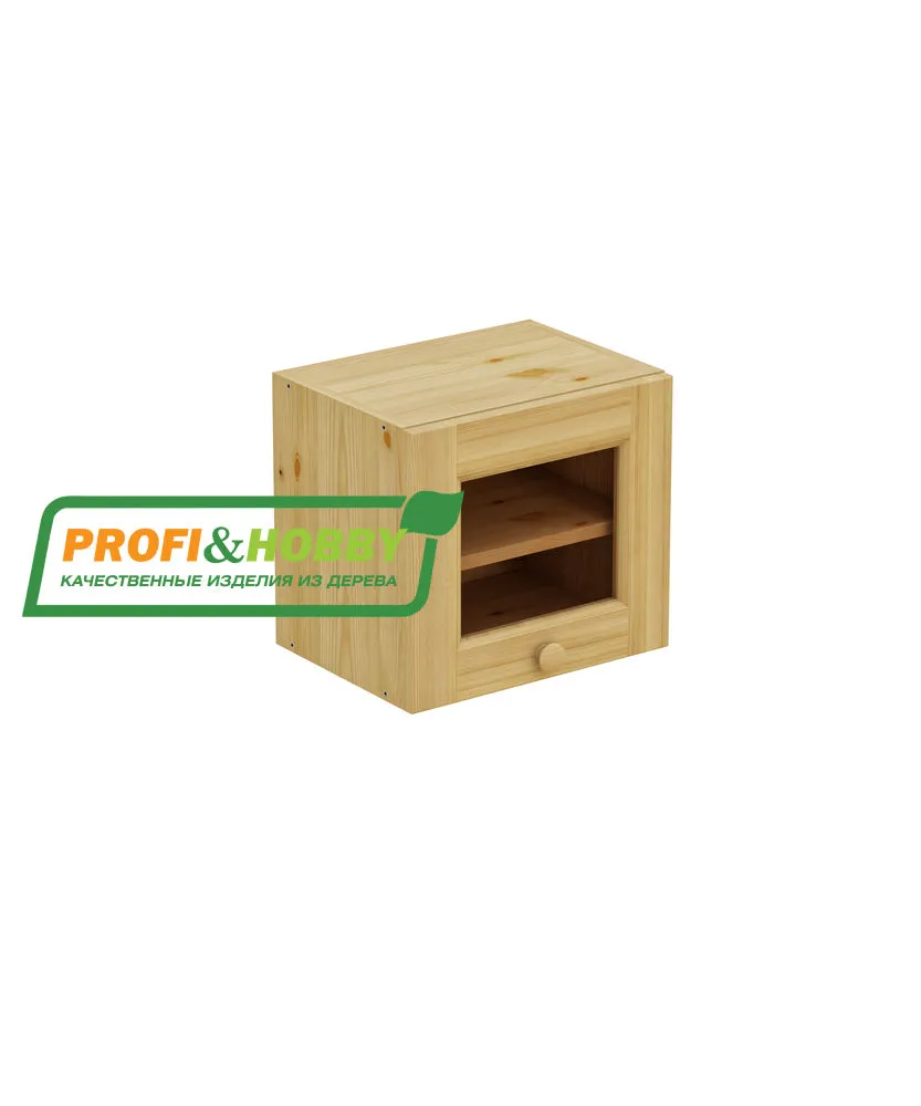 Шкаф-антресоль навесной 400 х 300 х 360, под стекло, сосна, бесцветный акриловый лак