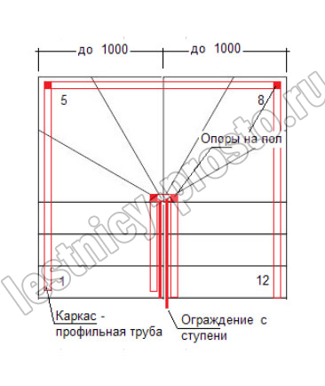 Основой лестницы Prosto Due 40×80 служит двойной металлический каркас из профильной трубы 40×80 мм (включая 4 опоры на пол под поворотом), который обеспечивает надёжную прочность конструкции и современный актуальный дизайн. Данный вариант лестницы предполагает поворот на 180° через забежные ступени. Под заказ возможно изготовление каркаса под поворотную площадку.