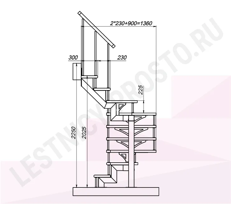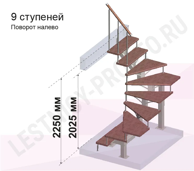 Высота лестницы 2025 - 2250 (9 ступеней) мм