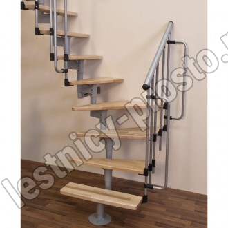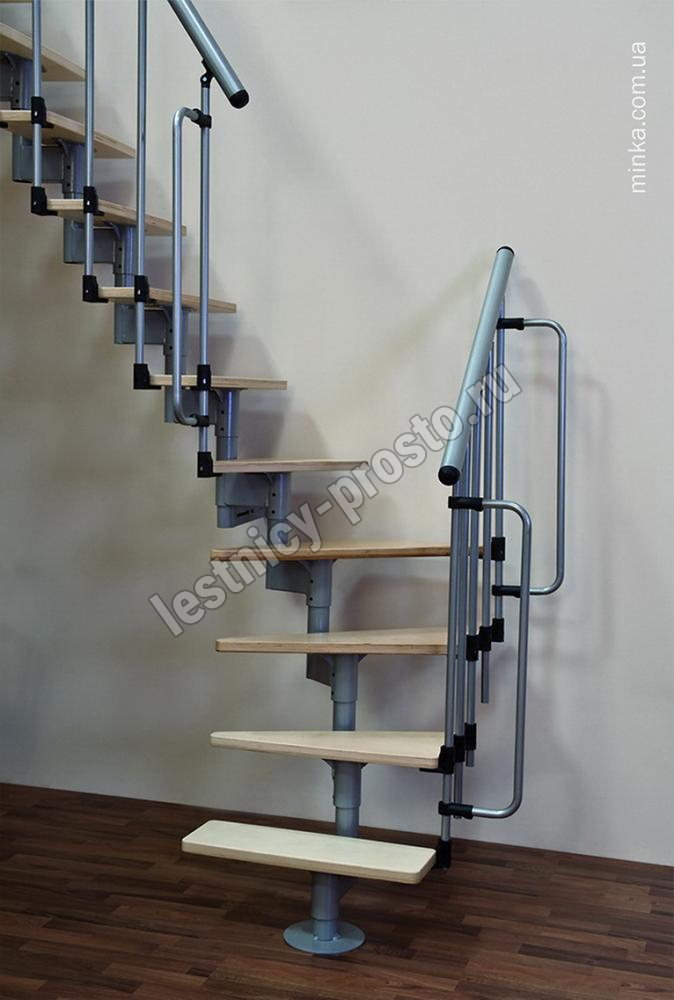 Алюминиевый поручень лестницы Joker 600 покрыт порошковой краской в цвет конструкции. Ступени изготовлены из берёзы и покрыты защитным износостойким фирменным лаком MINKA.