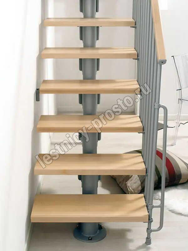 Красивая комфортная лестница с уникальной модульной конструкцией, которая позволяет собрать большое число модификаций, подходящих под ваш проём и другие условия помещения. Возможные варианты сборки лестницы смотрите в блоке "чертежи и схемы". При монтаже модульной лестницы KOMPACT, вы можете варьировать высоту шага и проступь, получив точную необходимую высоту и габариты. Лестница KOMPACT возможна в двух вариантах: с шириной марша 740 мм и 890 мм. Ступени выполнены из массива бука и покрыты качественным износостойким лаком. Базовая комплектация позволяет получить лестницу под высоты этажа в диапазоне 2250 - 3030 мм, кроме того, установив дополнительный комплект увеличения высоты, можно поднять высоту лестницы до 3730 мм. Каркас и стойки ограждения выполнены из пластифицированного металла.