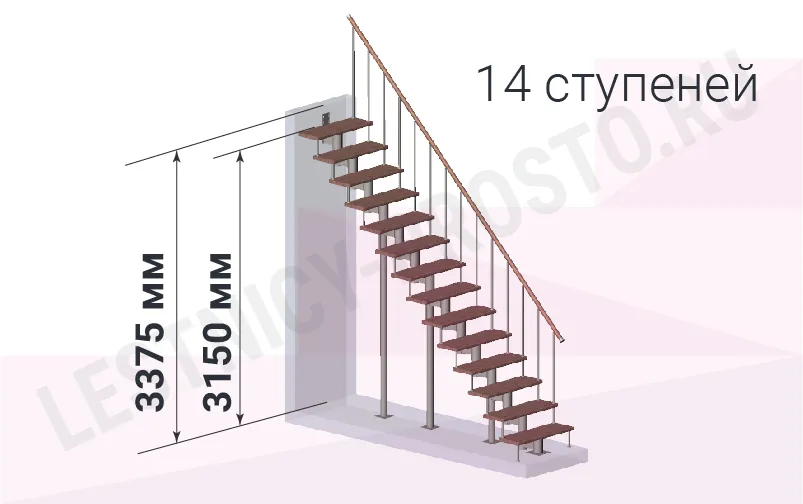 Высота лестницы 3150 - 3375 (14 ступеней) мм