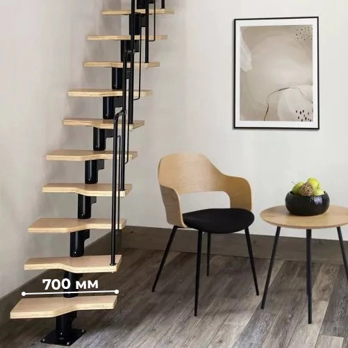 Лестница Prosto Urban Black гусиный шаг 700 мм, h234-336 см (13 ступеней), бук