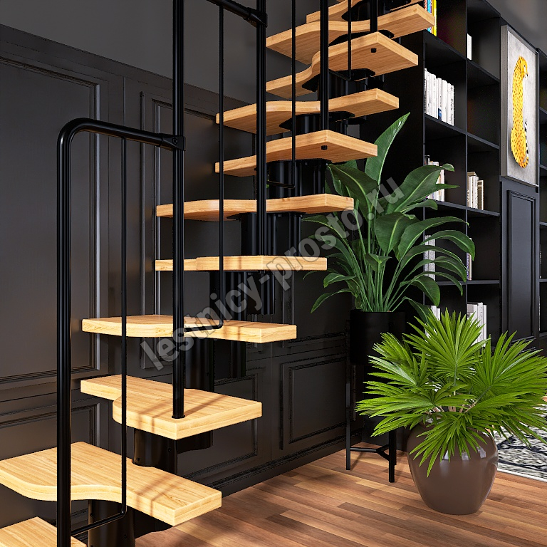 соответствует картинке, но вы не ограничены в его выборе. Лестницу можно приобрести и без ограждения, и с любым другим. Устанавливать на такую лестницу можно почти всё, начиная от классических деревянных балясин и заканчивая эксклюзивными коваными изделиями.