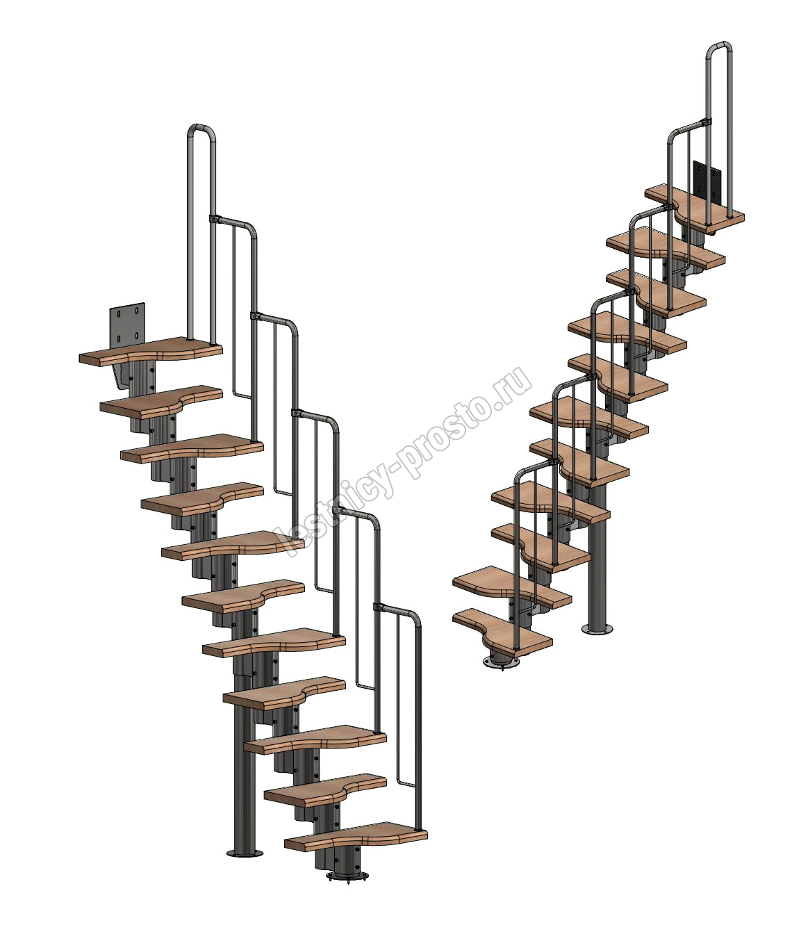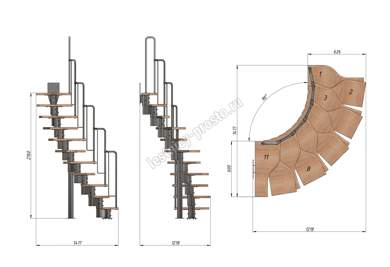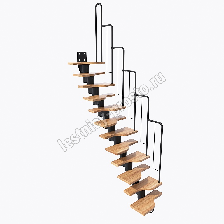 Лестница Prosto Urban Black гусиный шаг 600 мм, h198-288 см (11 ступеней), дуб