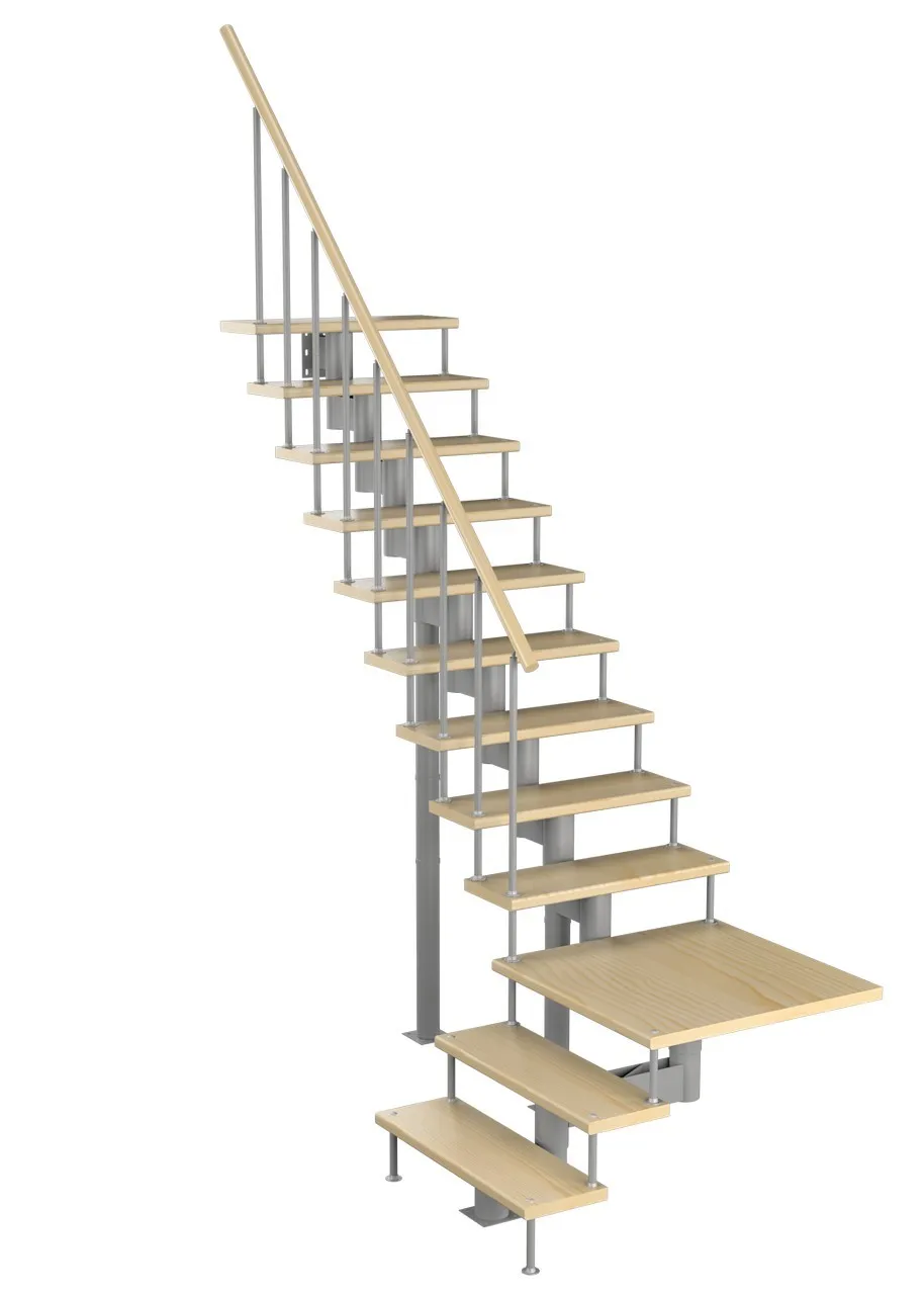 - Регулируемый по высоте в пределах 180-240 мм модуль. Большой диаметр и толщина металла деталей обеспечивают жесткость и прочность конструкции. Регулировка каждого модуля по высоте позволяет легко приспособить лестницу под ваше помещение.