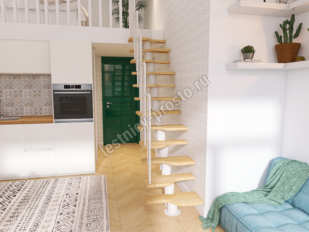 Лестница Prosto Urban White гусиный шаг 700 мм, h180-264 см (10 ступеней), дуб