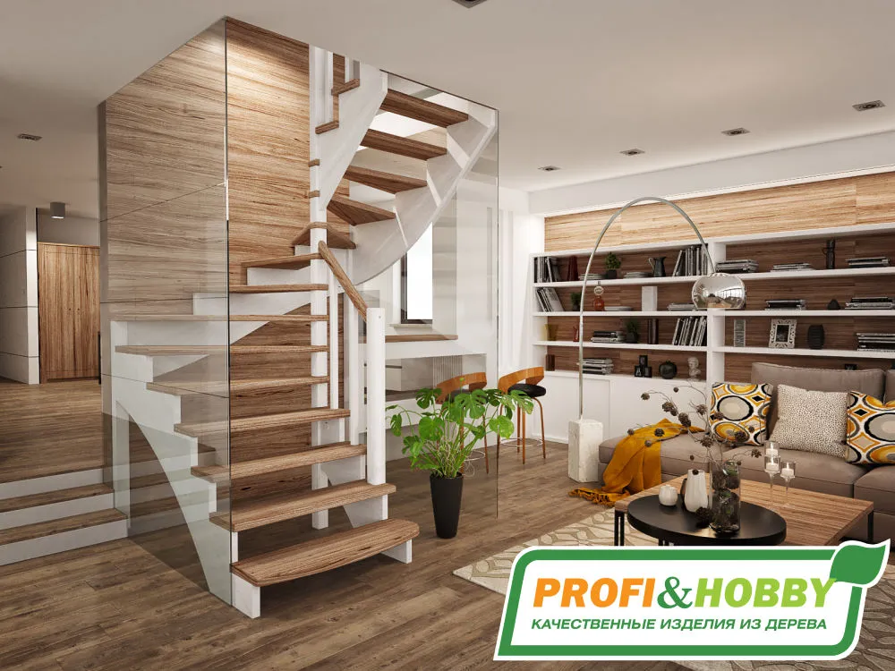 Ступени лестницы изготовлены из дерева категории А/В без какого-либо покрытия.