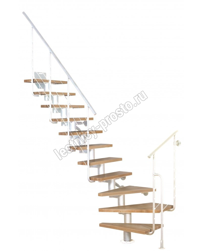 Модульная лестница DIXI PLUS серебро, светлый дуб