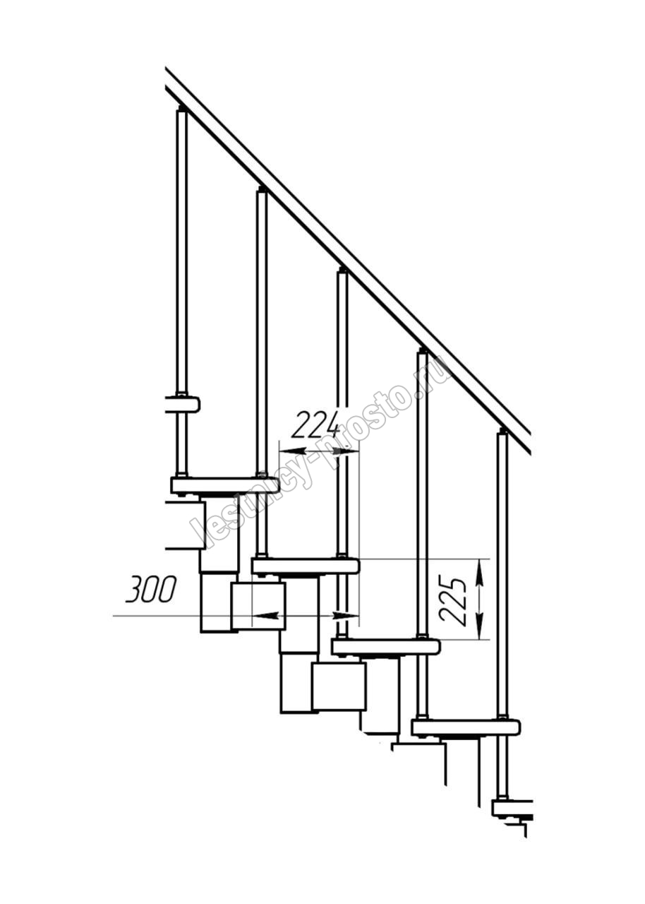 Модульная лестница Фаворит 225 2925-3055, Серый, Сосна, Крашеная, Без Ступений