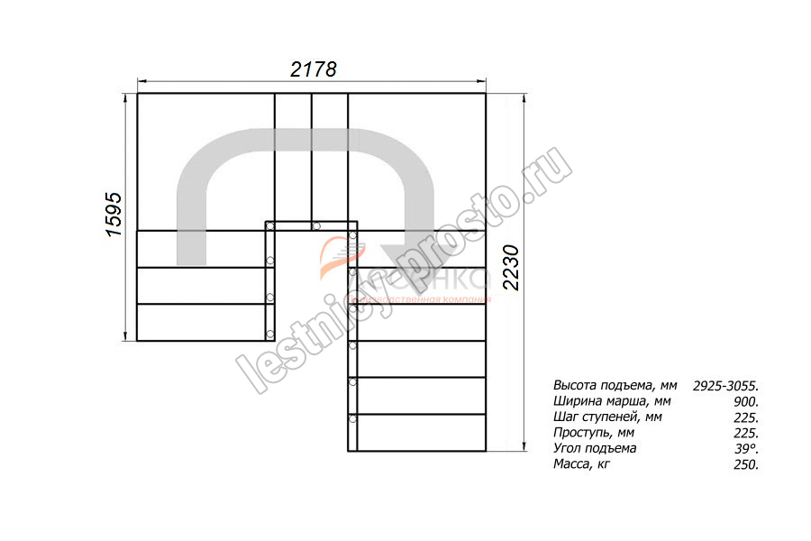 Модульная лестница Комфорт 225 2925-3055, Серый, Бук, Крашеная