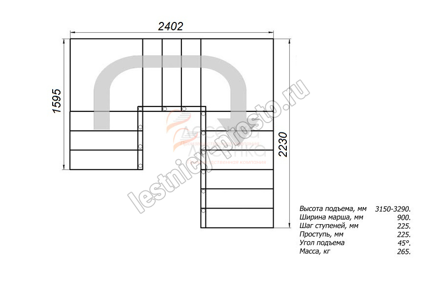 Модульная лестница Комфорт 225 3150-3290, Черный, Сосна, Крашеная, Без Ступений