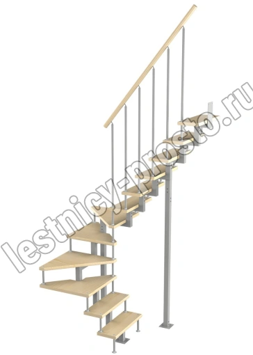 Модульная малогабаритная лестница Эксклюзив 2700-2925, Серый, Сосна, Нержавеющая сталь