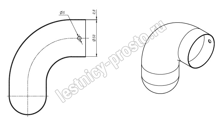 Литое декоративное окончание для деревянного или ПВХ поручня диаметром 50 мм.