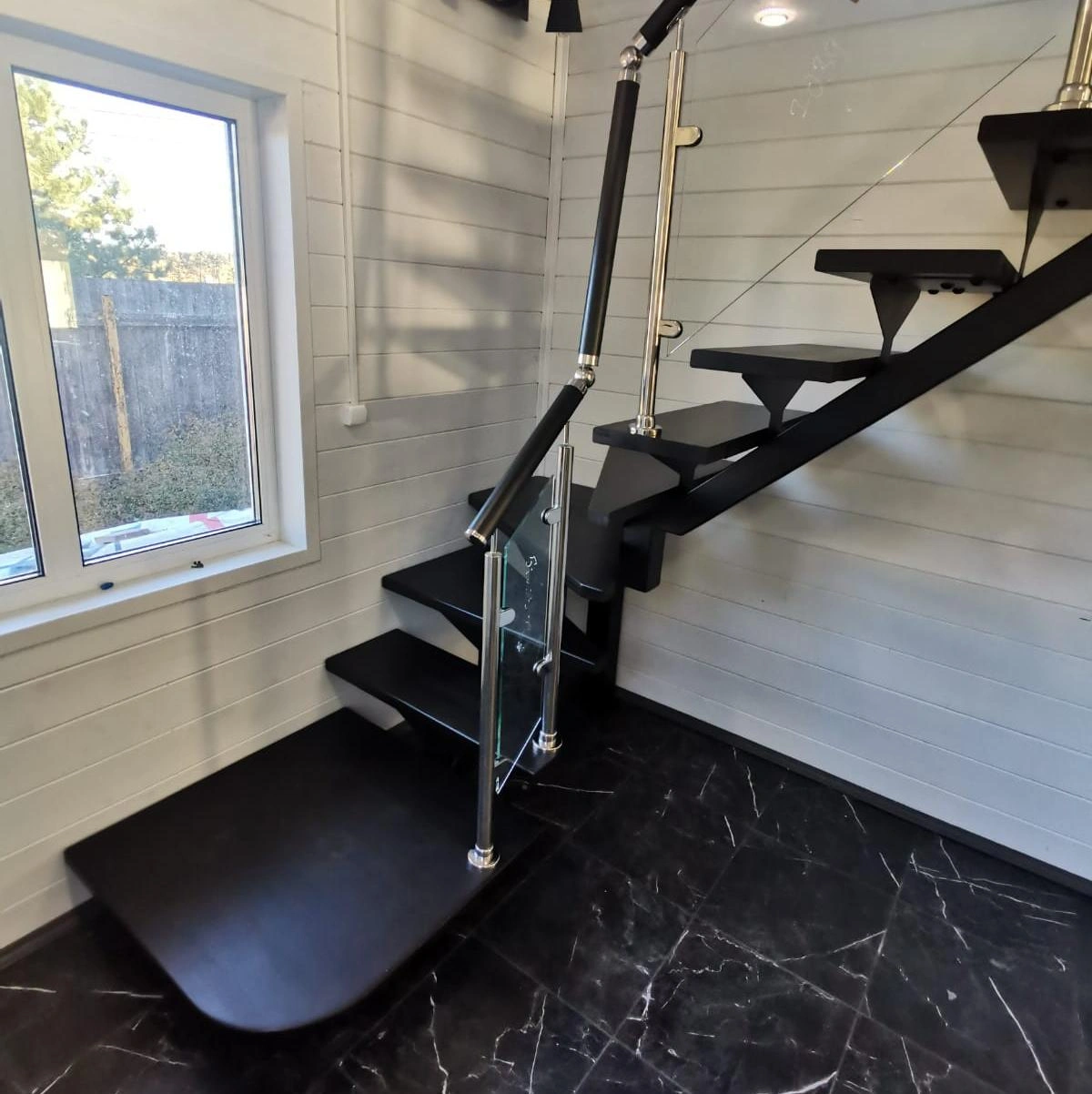 Стеклянная лестница на металлическом каркасе LP-3103