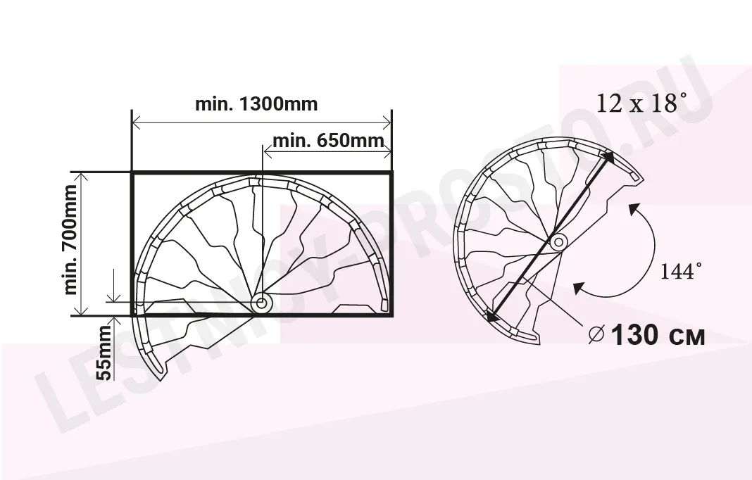 Мин. проём 1300 × 700 мм