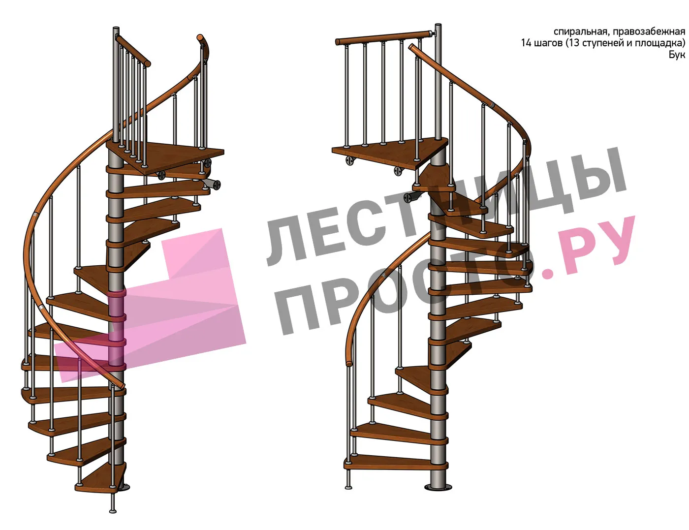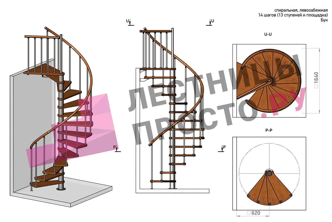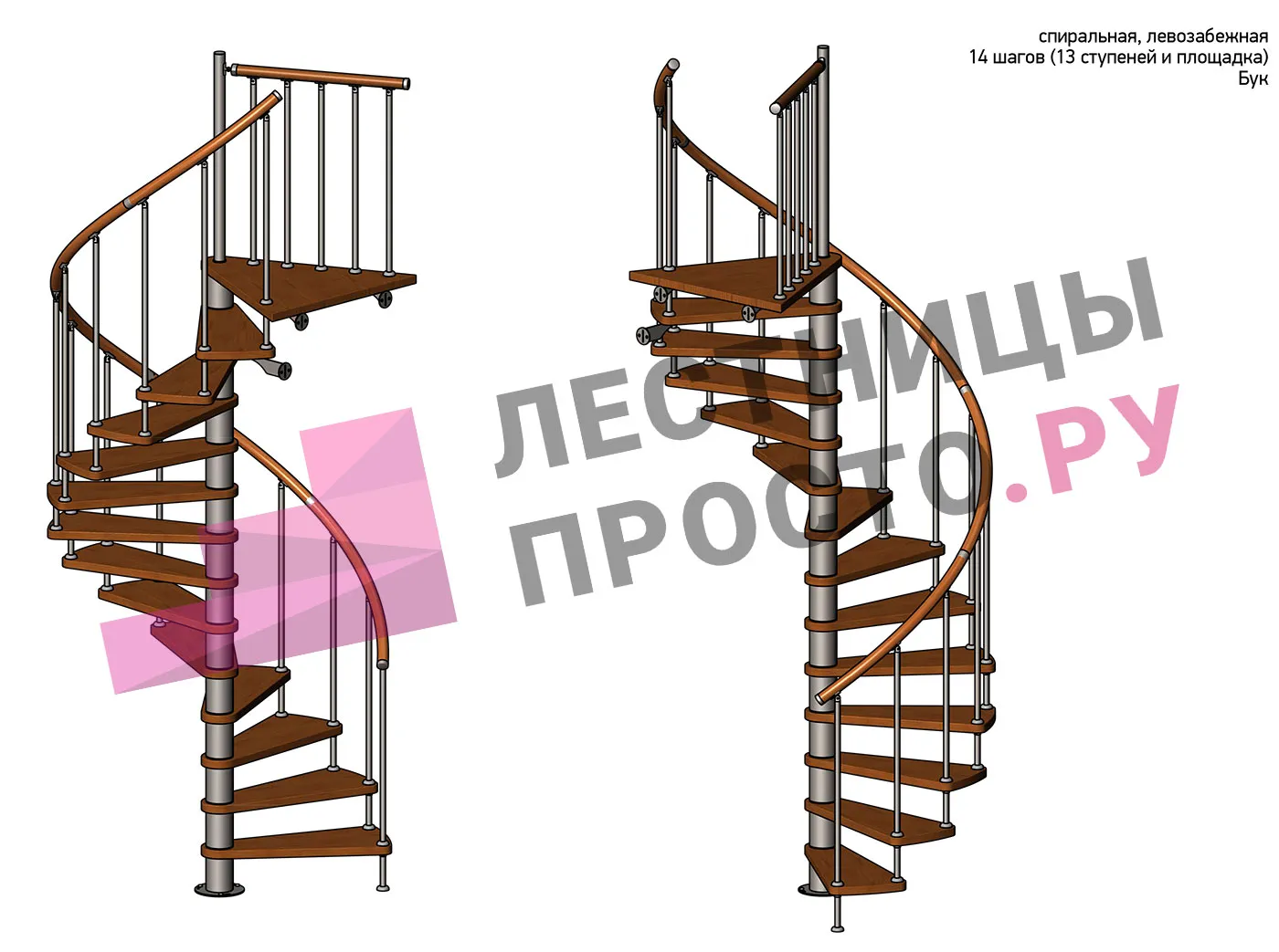 Винтовая лестница Prosto Spiral Black D160см, h303.9-348,1 см, бук