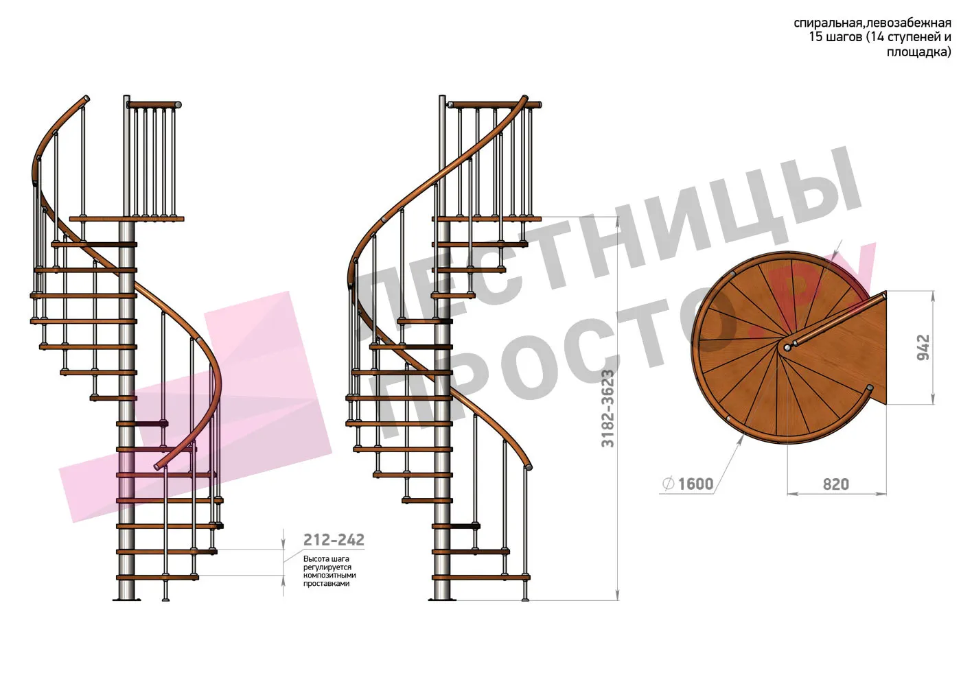 | Винтовая лестница Prosto Spiral Black D160см, h318.2-362.3 см |