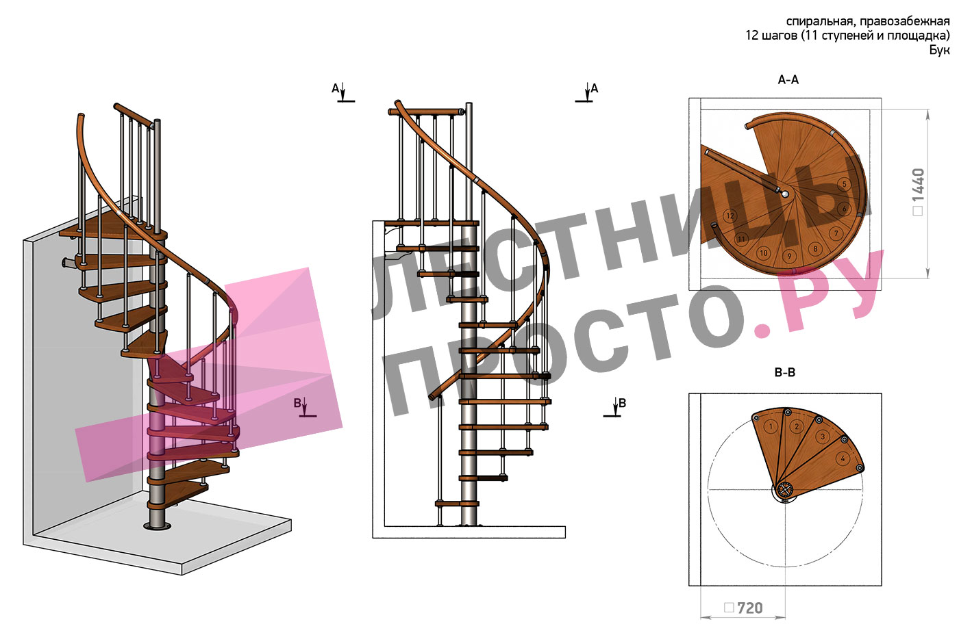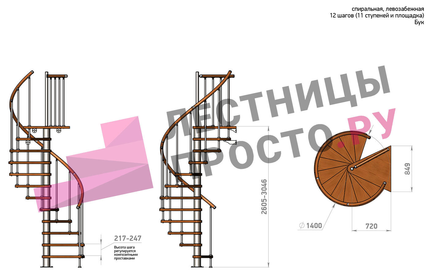 Винтовая лестница Prosto Spiral White D140см, h260.5-304.6 см, бук