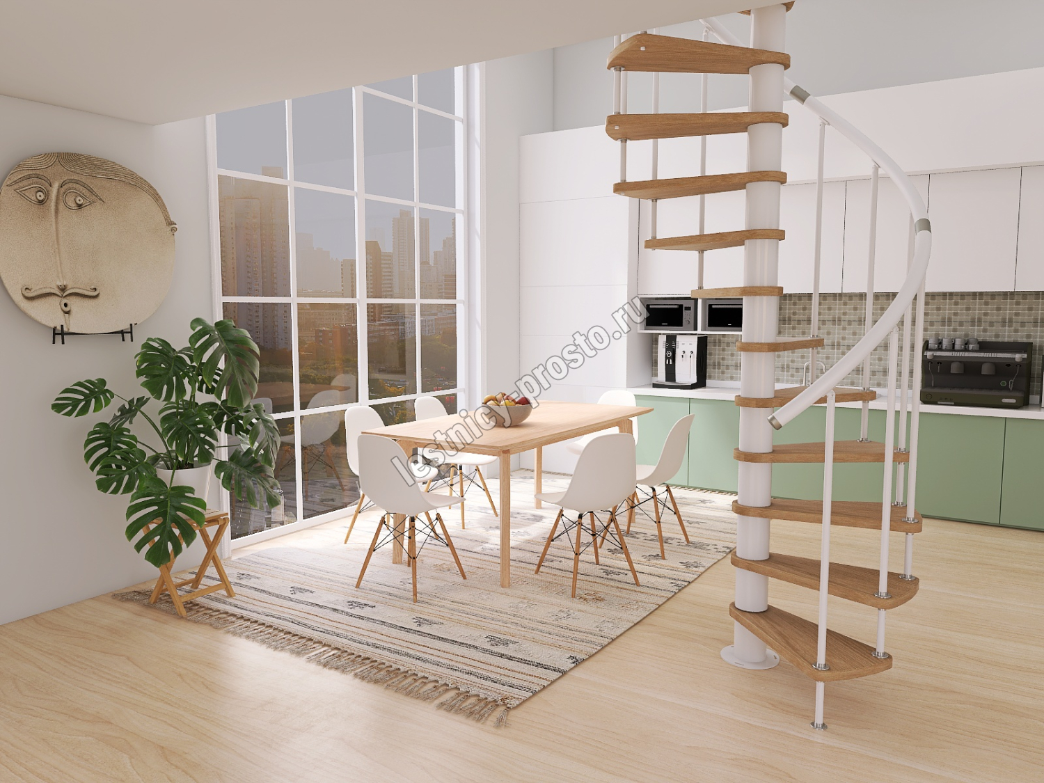 Винтовая лестница Prosto Spiral White D140см, h318.2-362.3 см